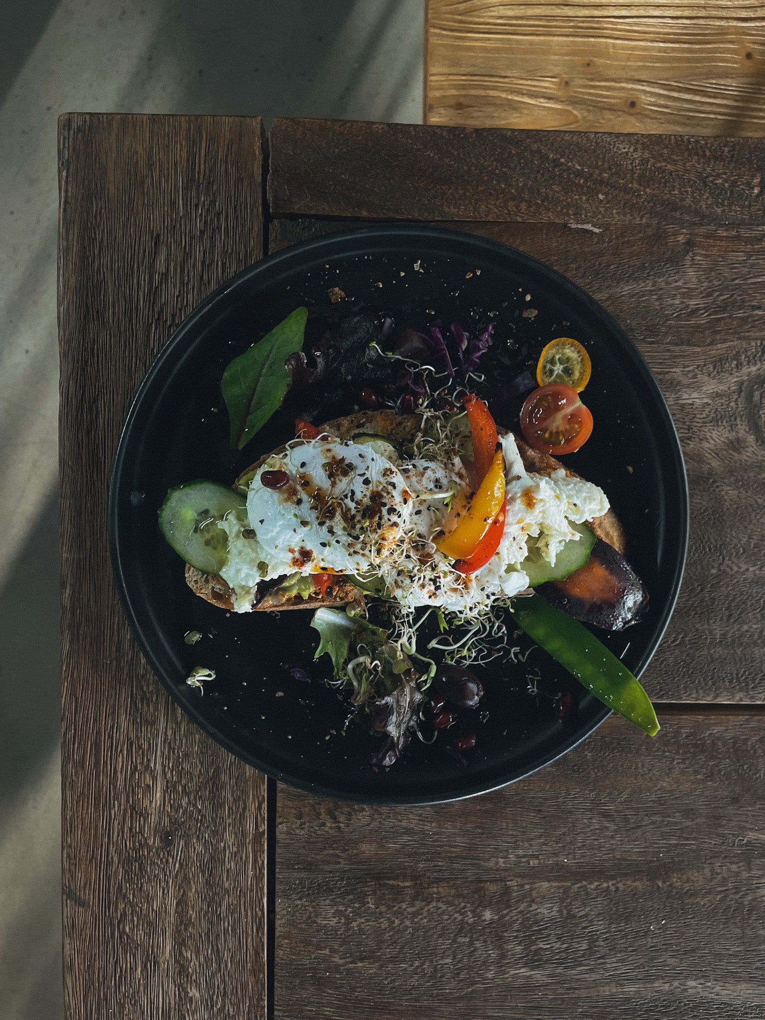 Sauerteigbrot. feta. pochierte eier